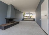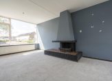 Indeling: ruime hal/entree met tegels, toilet, woonkamer ca. 30 m² met open haard, keuken.