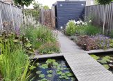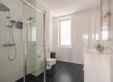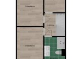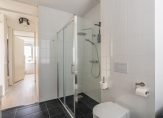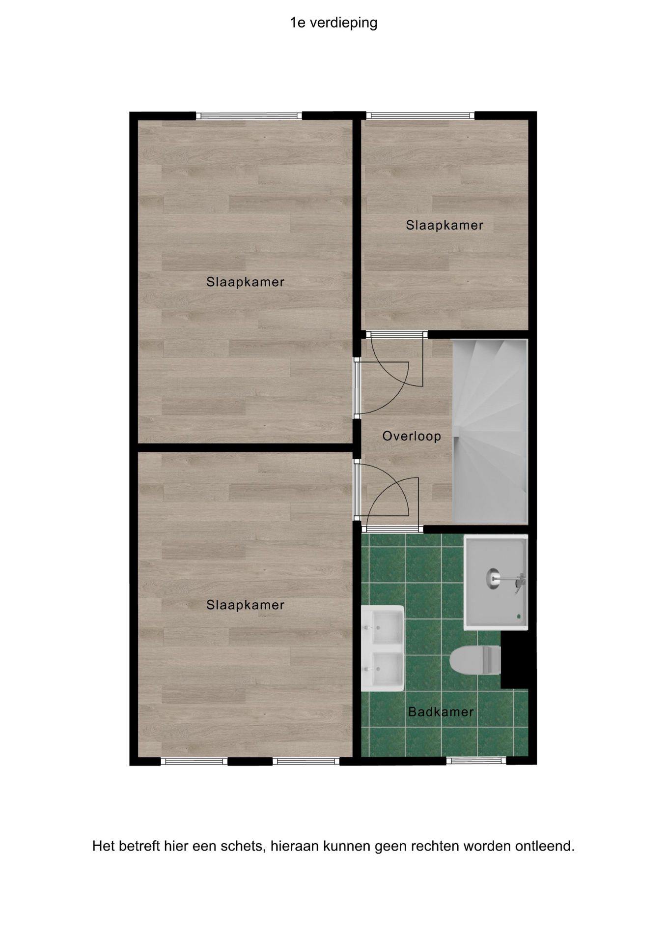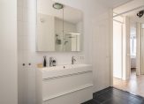 1e verdieping: overloop v.v. laminaat, moderne badkamer met royale inloop(stort)douche, wastafelmeubel en 2e toilet, 3 slaapkamers allen v.v. laminaat (ca. 450×300, 425×300 en 290×230).
