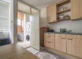 Begane grond: hal/entree met 2 inbouwkasten, toilet, woonkamer van circa 576×362, woonkeuken ca. 425×360 met inbouwapparatuur, bijkeuken.