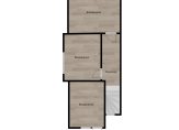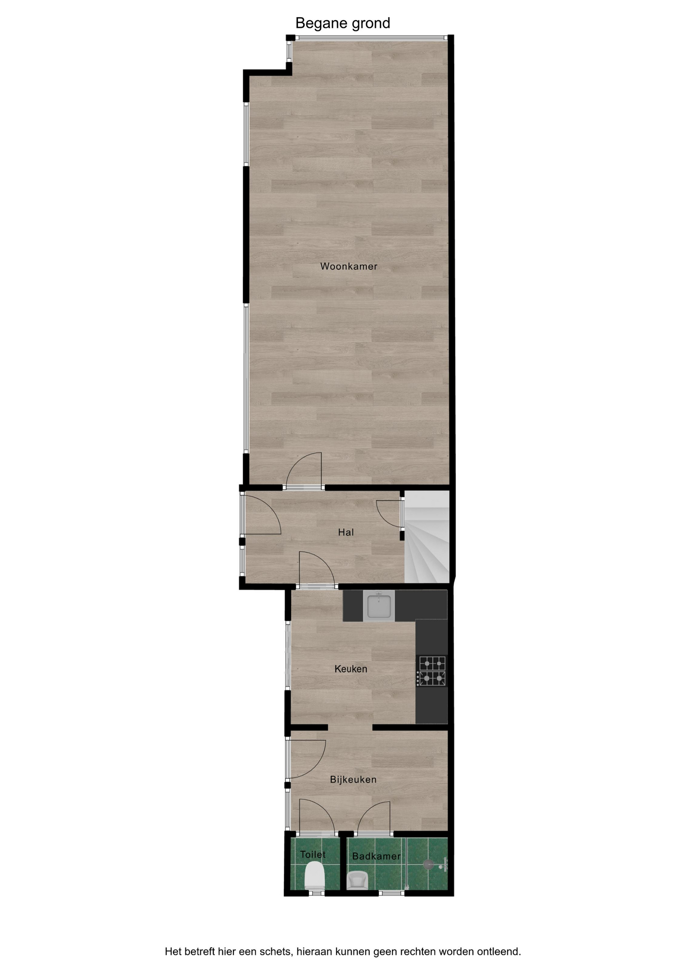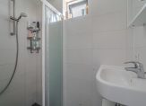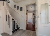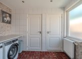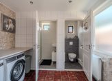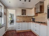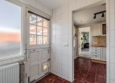 Begane grond: Hal/entree met laminaat, woonkamer v.v. laminaat, keuken met inbouwapparatuur en plavuizen, ruime bijkeuken met witgoedaansluiting, modern betegeld toilet, badkamer v.v. wastafel en douchecabine.