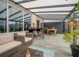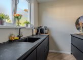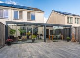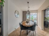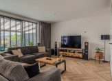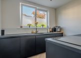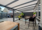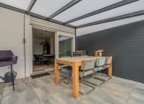 Deze 2-onder-1 kap is werkelijk een plaatje. Zo is de woning voorzien van een extra eetkamer met een schuifpui naar de tuin, een fraaie, nieuwe keuken en een zeer royale overkapping maar ook aan zonnepanelen en kunststof kozijnen is gedacht. Kortom de komende jaren zit je qua onderhoud goed. Aan de achterzijde heb je over de gehele breedte van de woning een overkapping zodat je lang van je eigen, heerlijke tuin kunt genieten. De tuin ligt op het zuiden dus aan zonne-uren geen gebrek. De voormalige garage is opgedeeld in 2 gedeelten aan de voorzijde zit een schuur voor de fietsen en aan de achterzijde heb je een heerlijke eetkamer met een schuifpui naar de tuin. De moderne, zwarte keuken is v.v. inbouwapparatuur en heeft een gezellig bargedeelte. De ligging van de woning is ideaal, een rustig straatje maar scholen, winkels en speelvoorzieningen vind je op loopafstand.