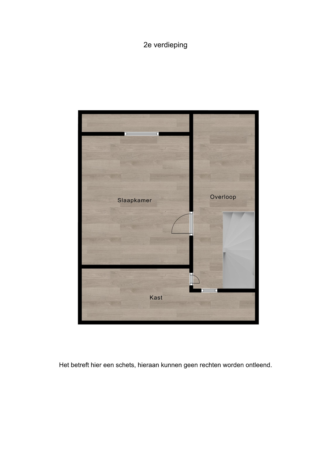 2e verdieping: overloop en 4e slaapkamer ca. 400×300, zolderberging.