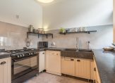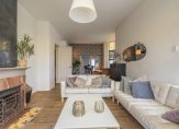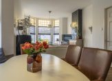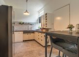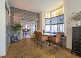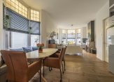 Bij binnenkomst wordt u meteen verwelkomd door de warme en gezellige sfeer die deze woning uitstraalt. De royale woonkamer (ca. 33 m²) is voorzien van een erker, hoge plafonds en prachtig geel glas. De houtkachel zorgt voor een knusse uitstraling, terwijl de grote ramen de ruimte vullen met licht. De praktische en knusse woonkeuken is de ideale plek voor het dagelijks leven en biedt een heerlijke verbinding met de achtertuin, waar u in alle privacy kunt genieten.