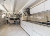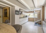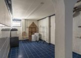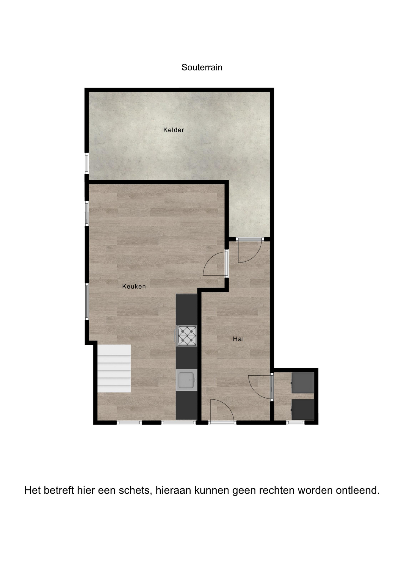 Souterrain: moderne woonkeuken (2021) met inbouwapparatuur ca. 500×240, gang met toegang naar de tuin, bijkeuken, voorraadkast en provisiekelder.