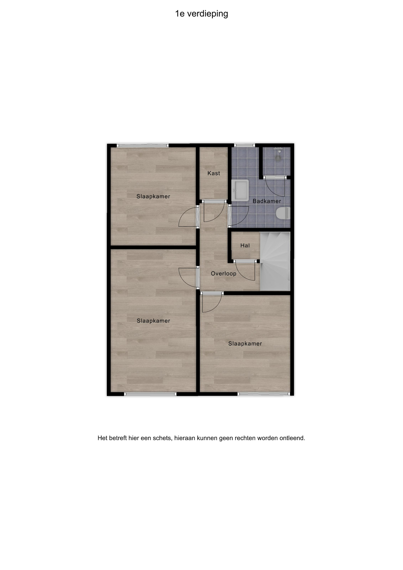 Eerste verdieping: overloop met vaste kast, 3 slaapkamers van circa 325×295, 460×275 en 330×275, badkamer met wastafelmeubel, douchecabine, 2e toilet en mechanische ventilatie