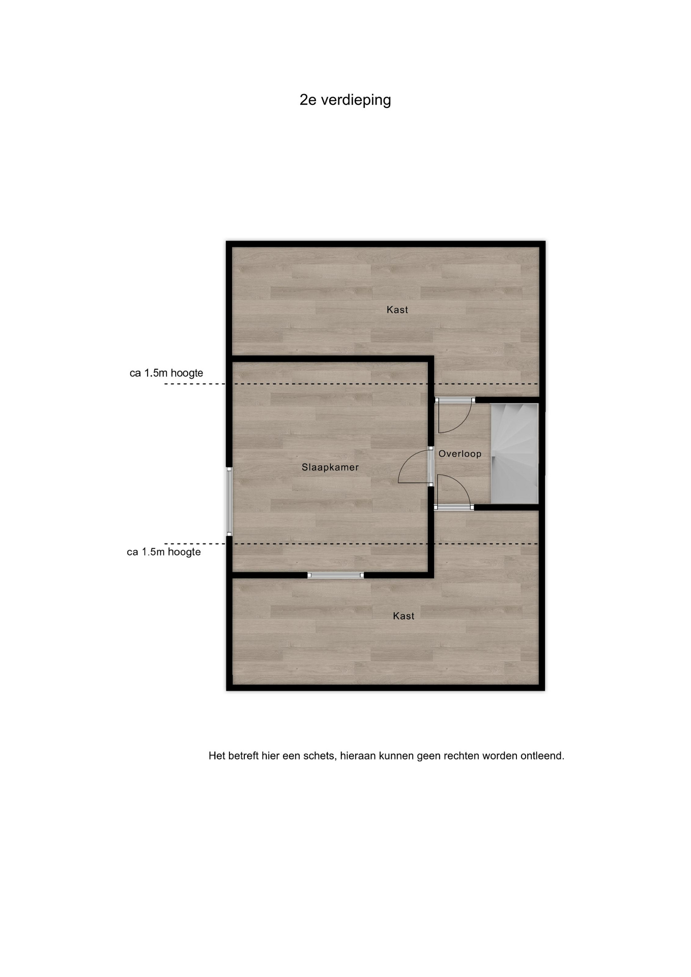Tweede verdieping: overloop, berging, slaapkamer van circa 370×300 met berging en cv ruimte