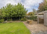 Geniet van een ruime, zonnige tuin op het noorden, compleet met een vrijstaande houten schuur, overkapping en garage. De garage is momenteel een sfeervol kroegje, maar kan gemakkelijk worden omgebouwd tot een ideale thuiswerkplek.