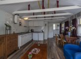 Overloop, woonkamer met open keuken van ca. 552×395 en openslaande deuren naar het zonnige dakterras van ca. 310×400. Vanaf het dakterras heb je een geweldig panoramische uitzicht over het Zuidlaardermeer. 2e slaapkamer van ca. 210×200.