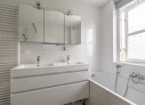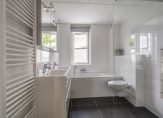 1e verdieping: v.v. laminaatvloeren, overloop, 3 slaapkamers van circa 400×270, 467×270 en 420×325, badkamer met dubbele wastafelmeubel, ligbad, inloopdouche en 2e toilet