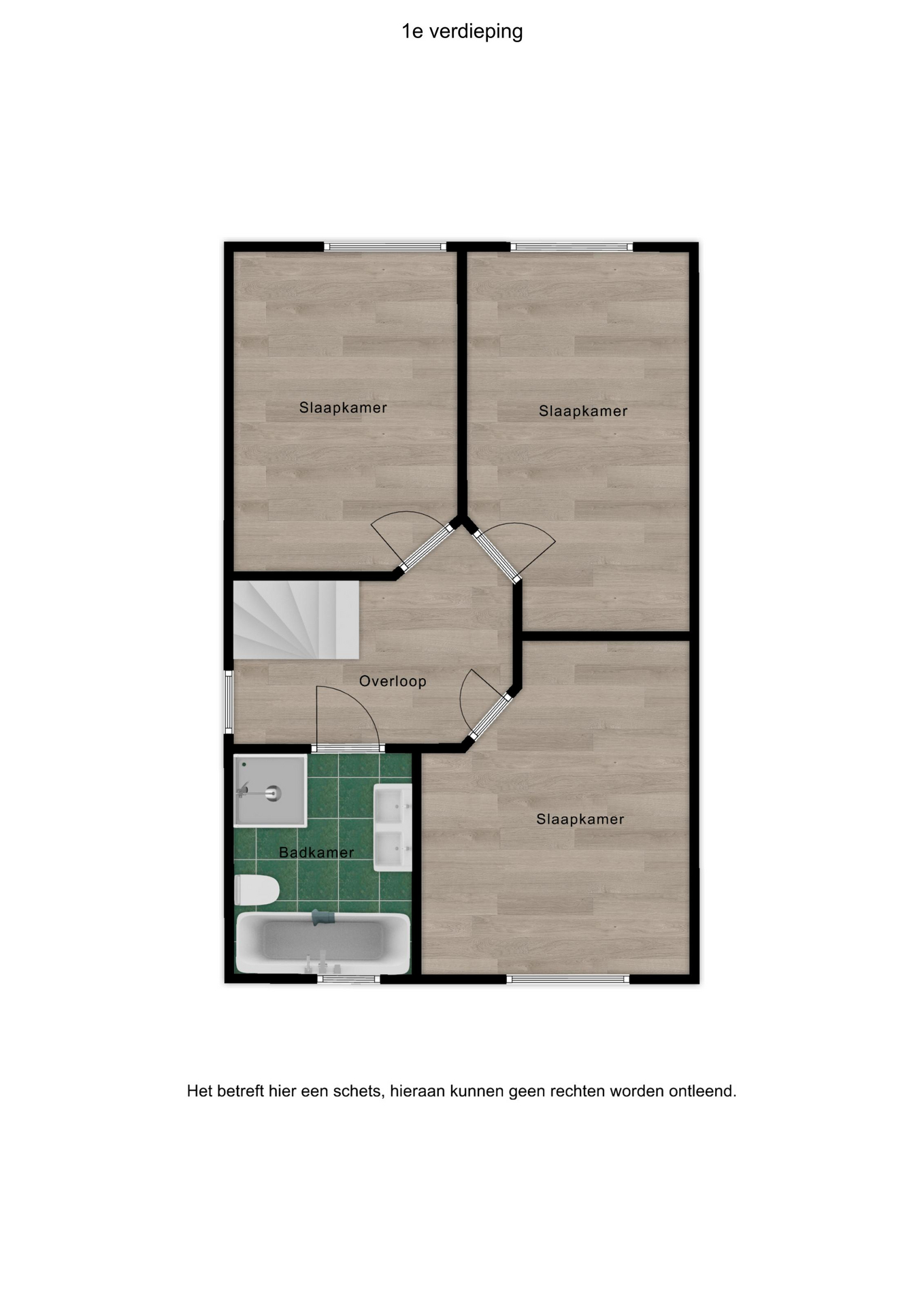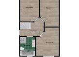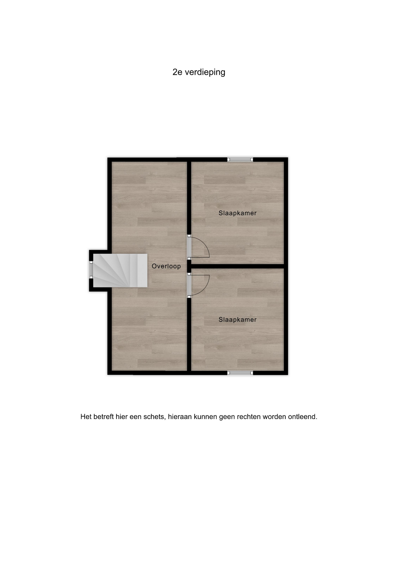 2e verdieping: overloop, 2 slaapkamers van circa 260×255 en 260×255 v.v. laminaat, berging.