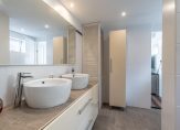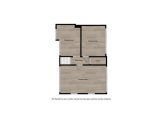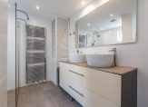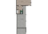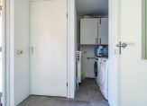 Indeling: entree met plavuizen, toilet, woonkamer met laminaatvloer ca. 550×390, open keuken v.v. inbouwapparatuur ca. 330×280, moderne badkamer met inloopdouche, dubbel wastafelmeubel en 2e toilet.