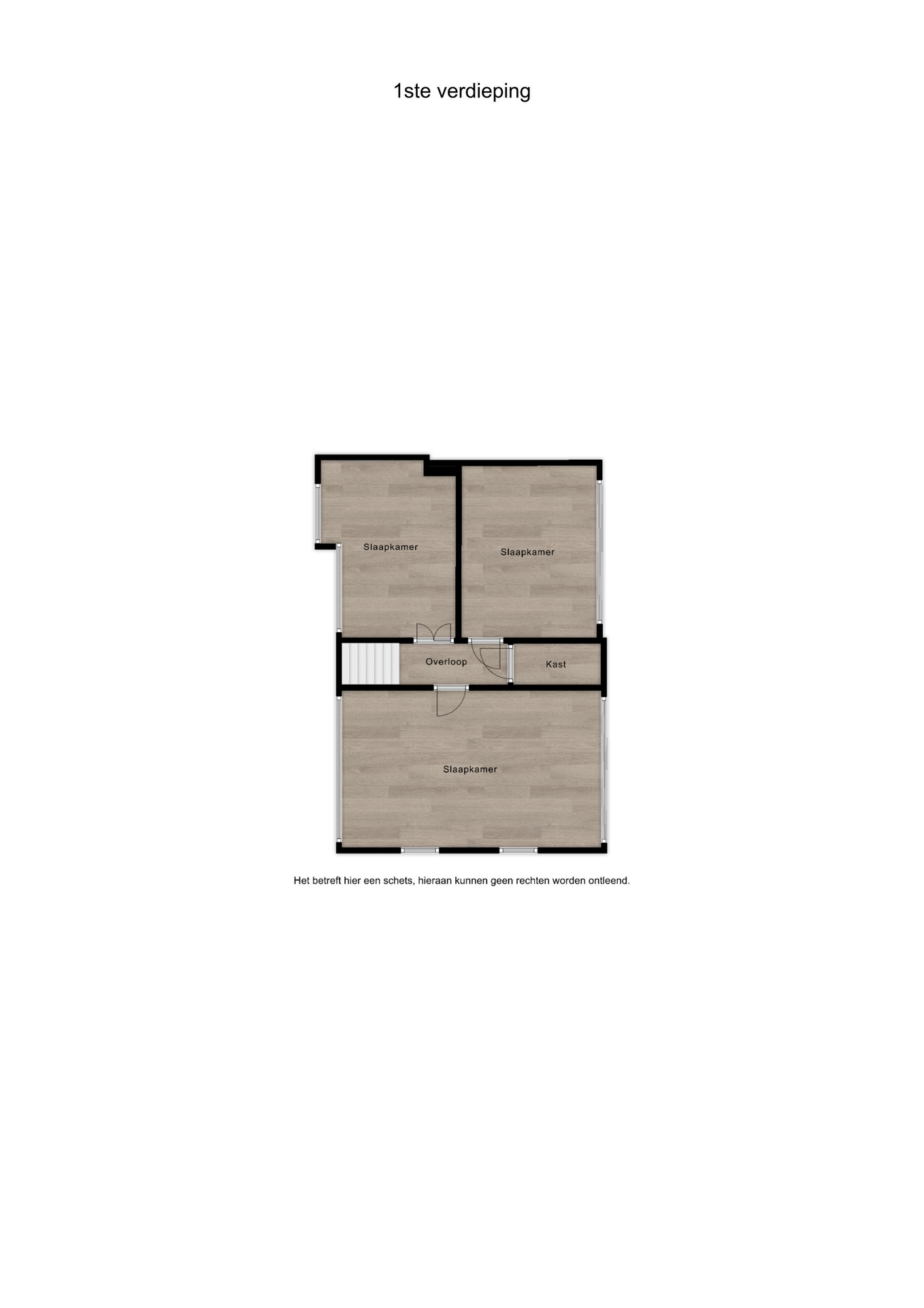 1e verdieping: overloop met inloopkast, 3 slaapkamers ca. 445×310, 315×220 en 315×230.