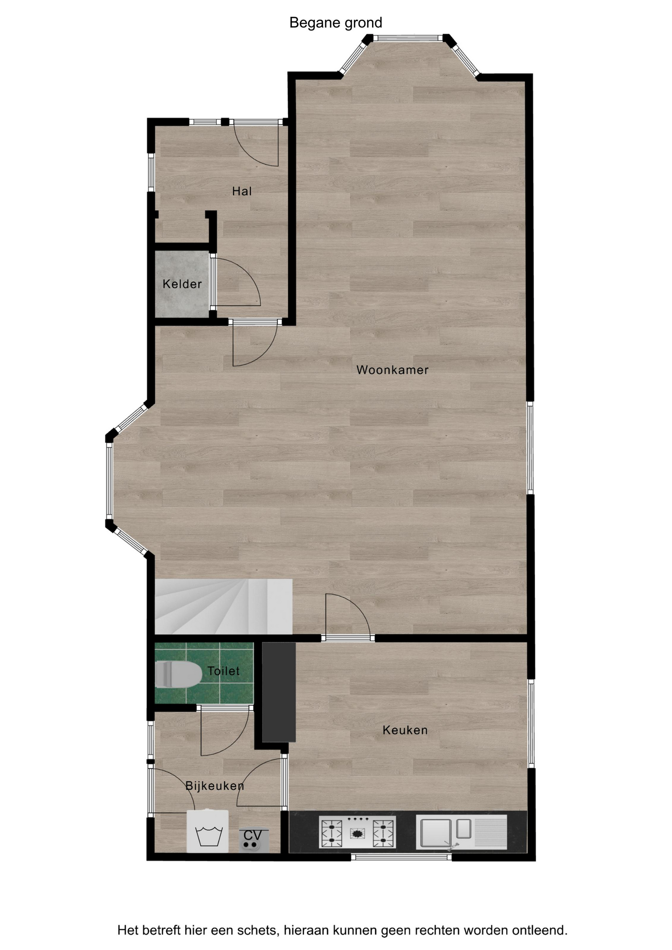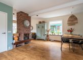 Indeling: entree/hal met laminaat, berging en kelder, sfeervolle woonkamer ca. 40 m² met laminaat, woonkeuken met inbouwapparatuur en plavuizen ca. 395×315, bijkeuken met plavuizen, modern toilet.
