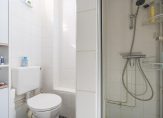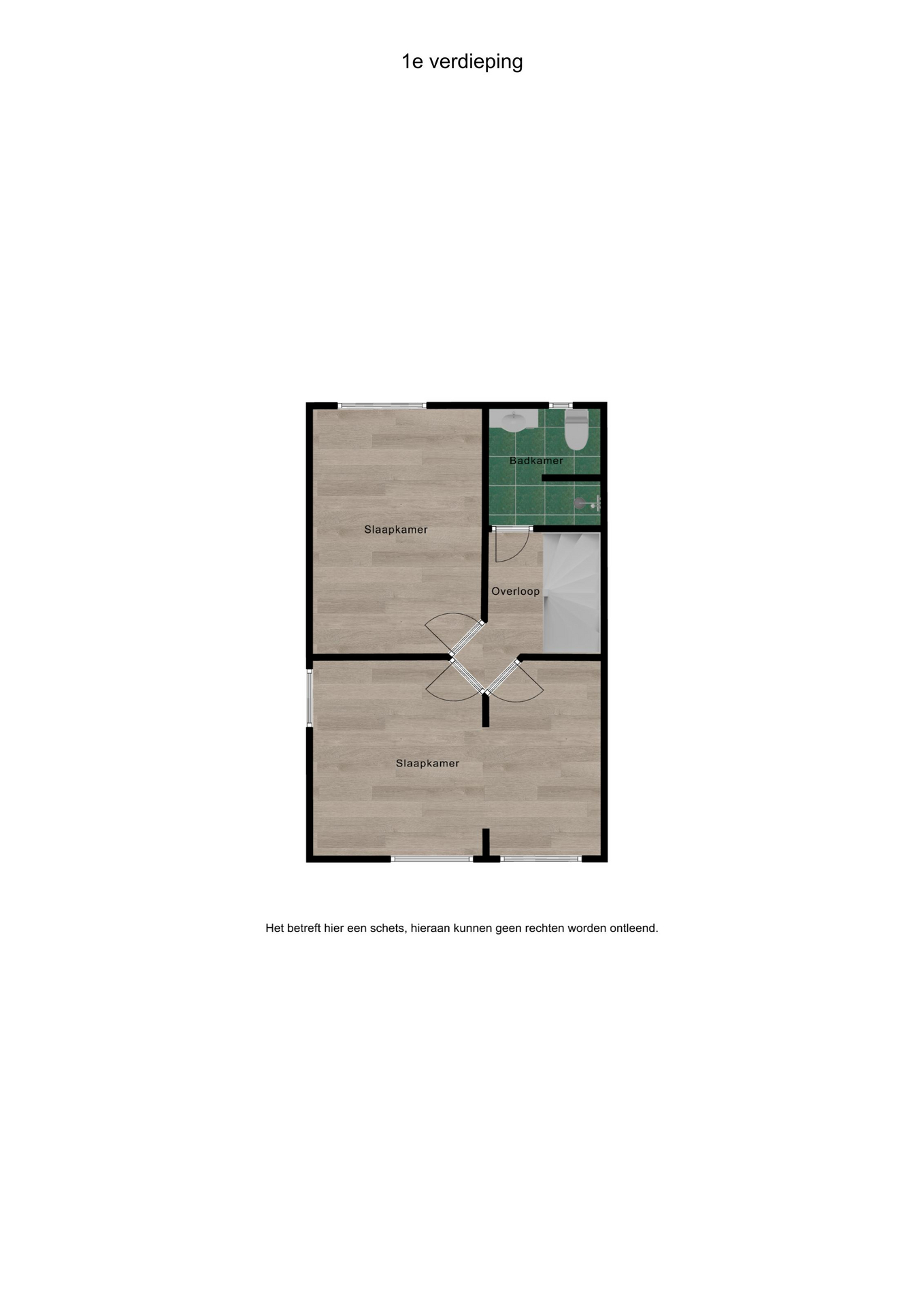 Eerste verdieping: overloop, 2 slaapkamers van ca. 485×344 en 415×288 met mogelijkheid tot een extra slaapkamer, badkamer v.v. toilet, douche en wastafelmeubel.