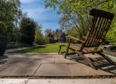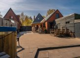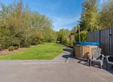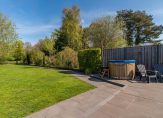 De diepe tuin ligt op het noorden maar heeft door zijn diepte volop zon. Hij is prachtig aangelegd en heeft een paar leuke verrassingen: uiteraard meerdere schuren maar daarnaast een heerlijke hottub én als kers op de taart grenst de tuin aan een vijver. Hier hebben de huidige bewoners een fijn terras aangelegd waar het heerlijk genieten is.