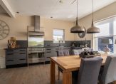 entree/hal met houten vloerdelen, kelder, modern betegeld toilet, lichte woonkamer met pelletkachel en houten vloerdelen ca. 395×367, open woonkeuken met inbouwapparatuur en houten vloerdelen ca. 630×400, bijkeuken met plavuizen waaronder vloerverwarming, moderne badkamer met dubbel wastafelmeubel en inloop(stort)douche.