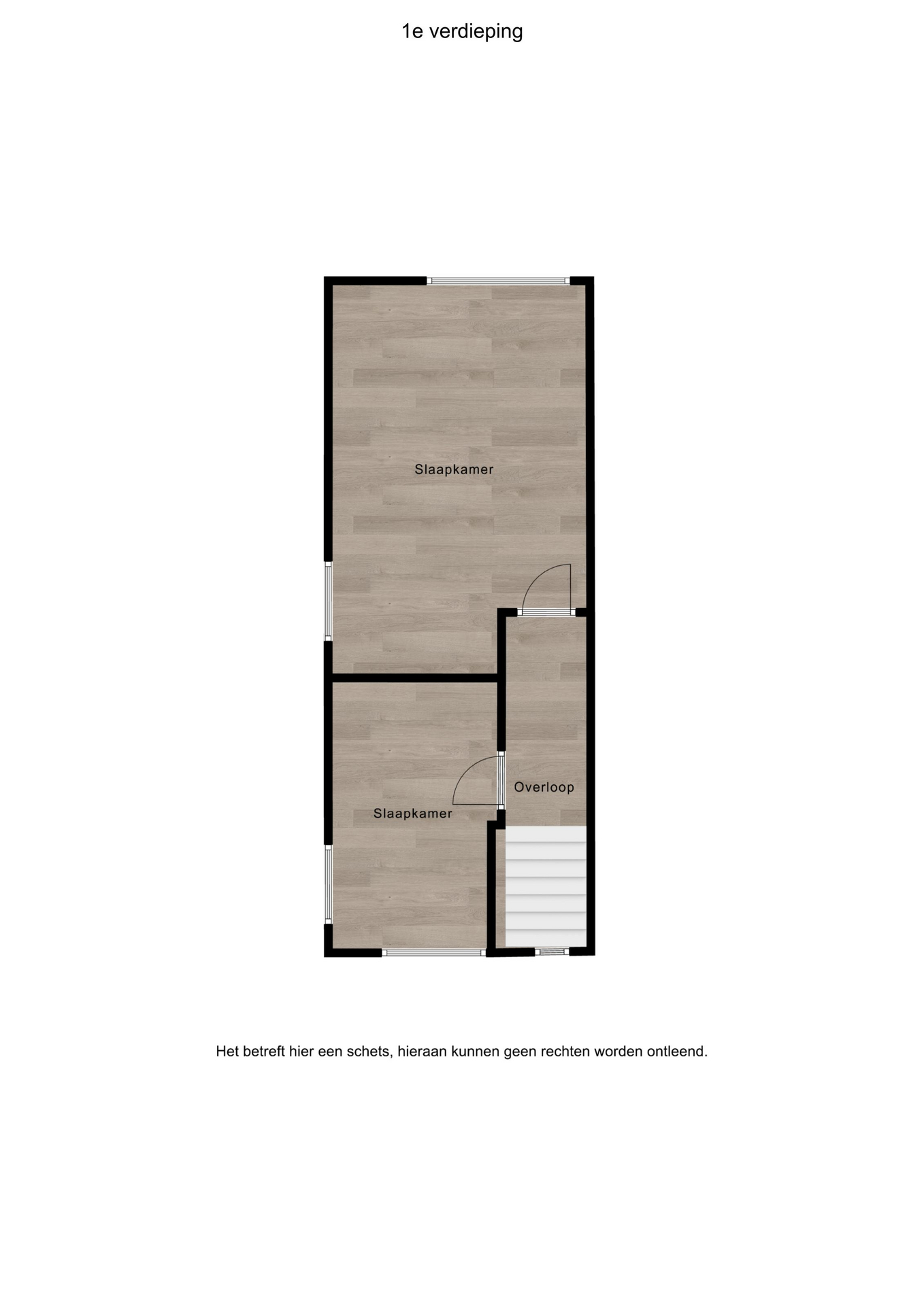 1e verdieping: overloop, 2 slaapkamers van circa 8 en 18 m². De grootste slaapkamer is eenvoudig te splitsen in 2 slaapkamers zodat je 3 slaapkamers hebt.