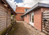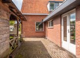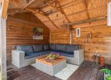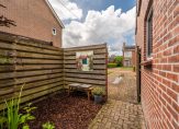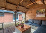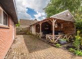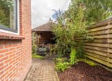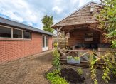 De tuin ligt op het oosten en heeft een houten schuur en een fijne overkapping waar je heerlijk kunt zitten!