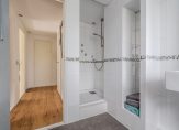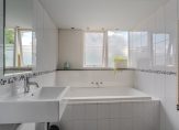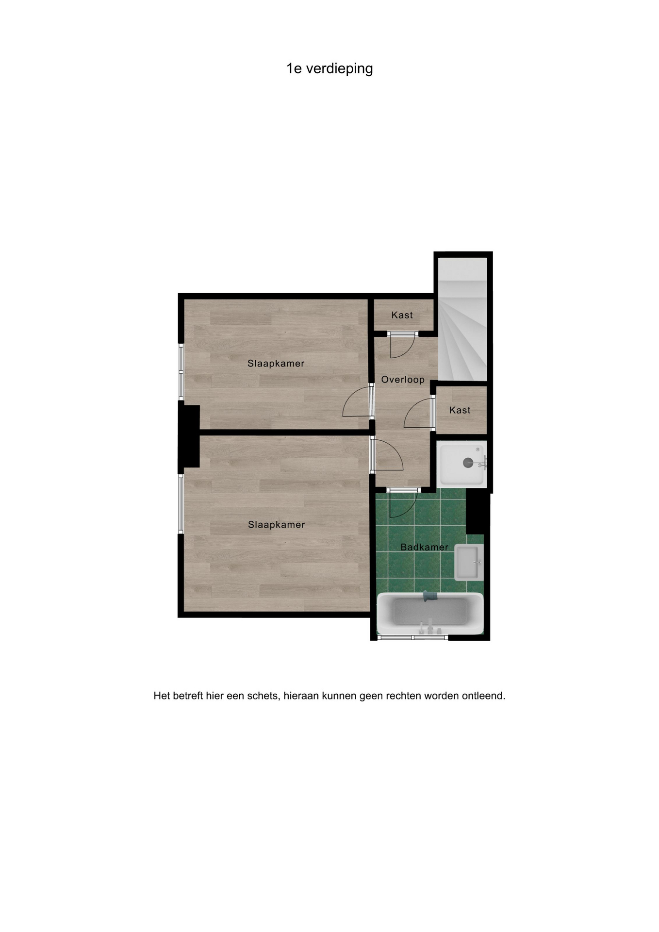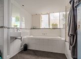 1e verdieping: overloop met laminaat en inbouwkasten, 2 slaapkamers ca. 355×225 en 360×325, badkamer met ligbad, douchehoek en wastafel.
