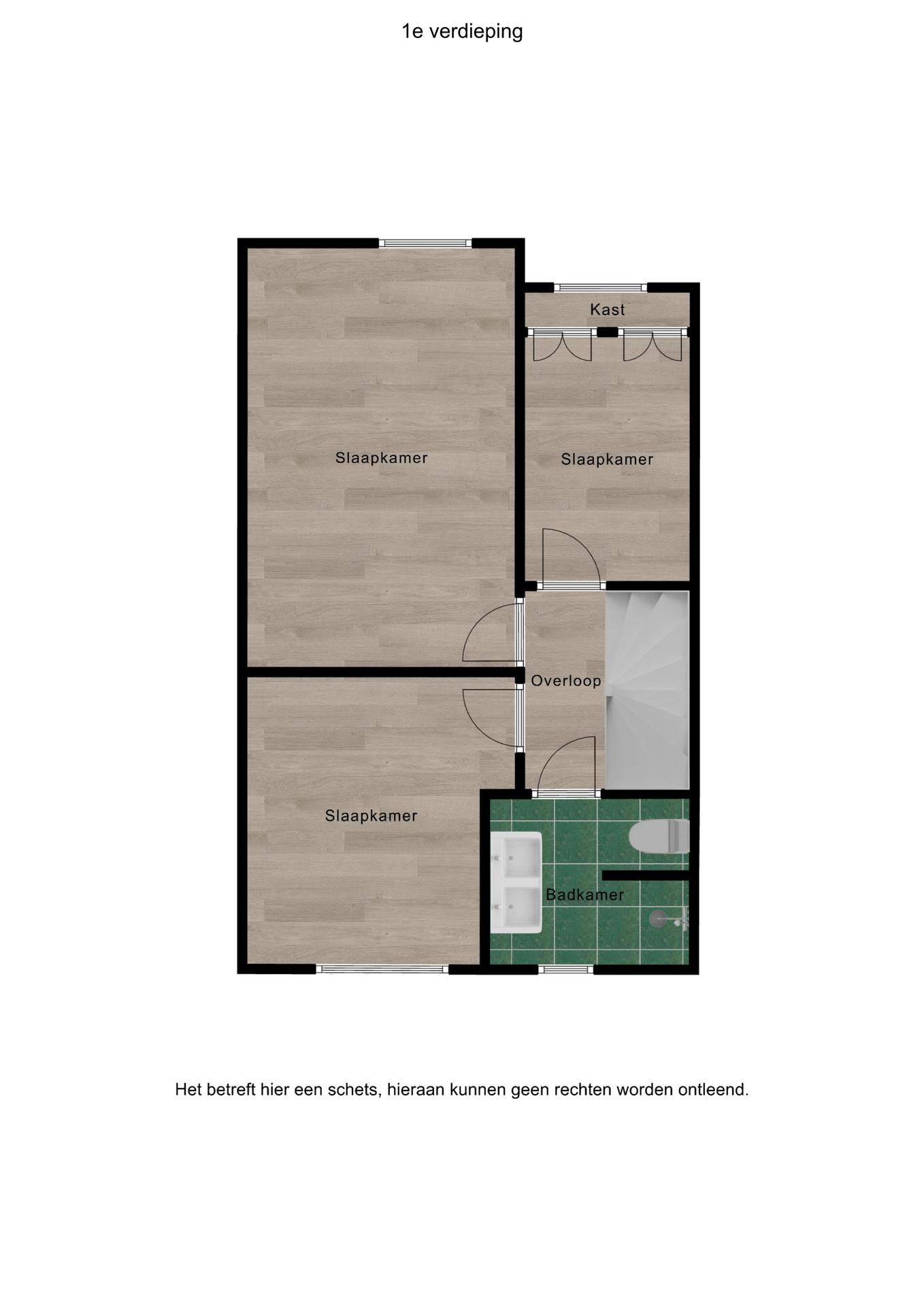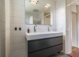 1e verdieping: overloop, 3 slaapkamers van ca. 335×270, 370×310 en 295×195. Badkamer met inloopdouche, toilet en dubbele wastafelmeubel.